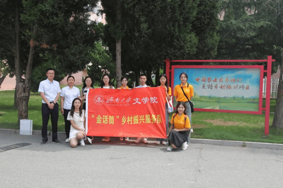 “金话筒”乡村振兴服务队赴威海乳山展开社会实践活动。活动以爱国主义教育为主线,以基层服务为副线,同步开展了团团小课堂志愿授课、冯德英文学馆研习、乡村振兴项目走访与农发行座谈、老党员采访、乳山二中英雄主题宣讲、下石棚村红色场馆参观等一系列活动。