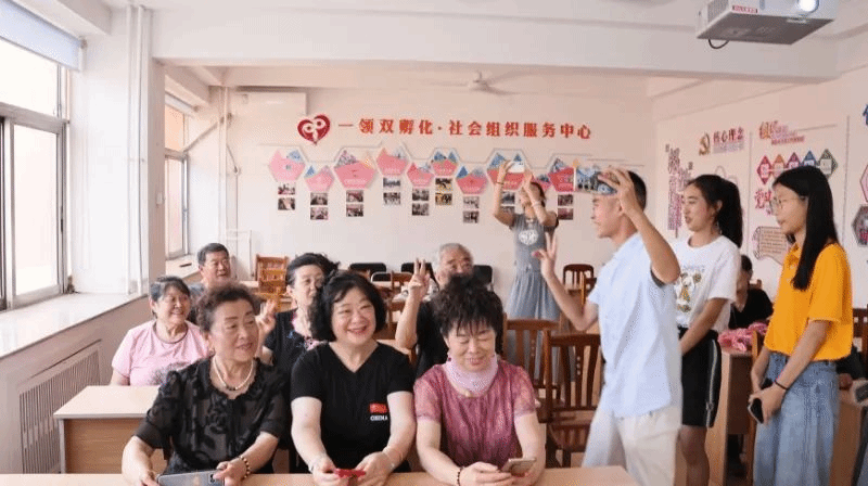 与此同时,团队成员向府前社区参与座谈的老年人进行了智能手机的使用科普。