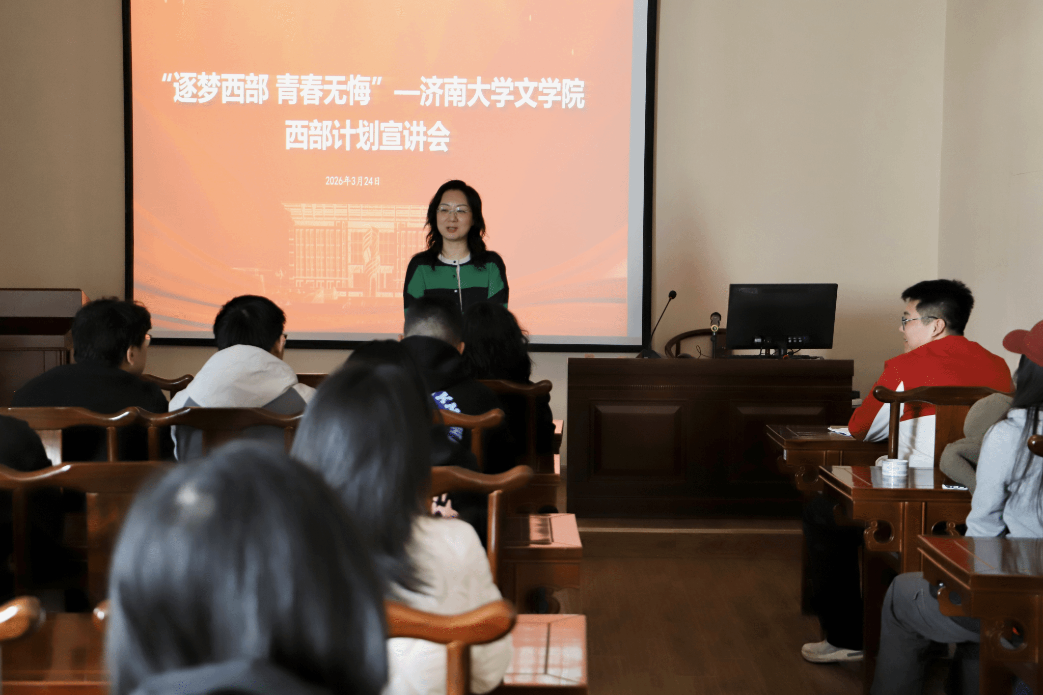 近年来西部计划工作的开展情况,勉励在场学子:“珍惜青春韶华、把握时代机遇,将个人成长与国家发展紧密结合,以青春之我、奋斗之我,在祖国最需要的地方书写青春华章。”