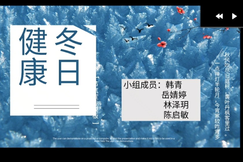 活动准备期间,志愿者们先构思了整个活动的流程和内容,并按计划做好小组人员分配。视频内容分为四个主题,分别是预防常见电信诈骗,手机基本使用流程,老年人冬季养生,丰富多彩的老年生活。活动进行时,志愿者利用多种途径查找相关资料,进行编辑排版,制作出贴合主题的PPT用于讲解。接着其他队员使用相关录屏软件,根据PPT内容,合作进行了视频的录制。在一周的时间内,志愿者通过多次的尝试和改进,在11月6日完成了视频的最终录制。