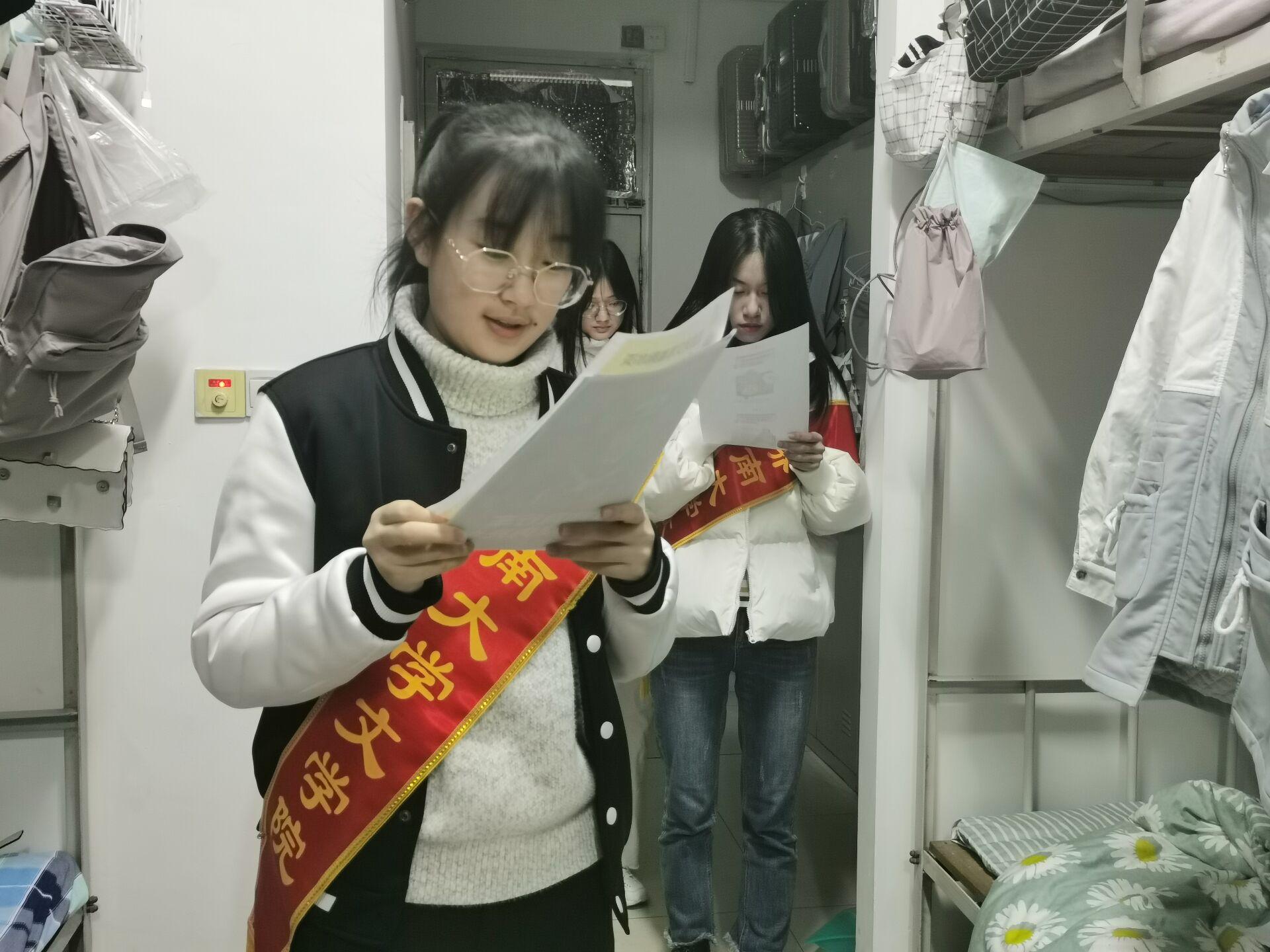 活动进行中,志愿者整齐地佩戴绶带,保持着良好的精神面貌,在宿管部同学的带领下,有序进入各个宿舍进行安全知识讲解与宣传,向同学们提出勿使用大功率、劣质及故障电器,勿乱接电线和勿携带易燃易爆物品进宿等宿舍防火注意事项,同时向同学们讲解了危险发生时保护自身安全的一些小窍门。宣传期间,同学们积极配合,认真听讲,有些同学还就具体事项提出了自己的见解。活动在融洽、和谐的氛围中顺利结束。