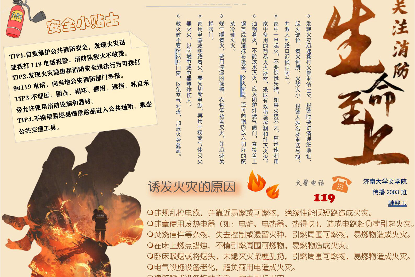 初心志愿者实践队于11月22日至12月1日于线上开展“关注消防,安全至上”消防月手抄报征集活动。
