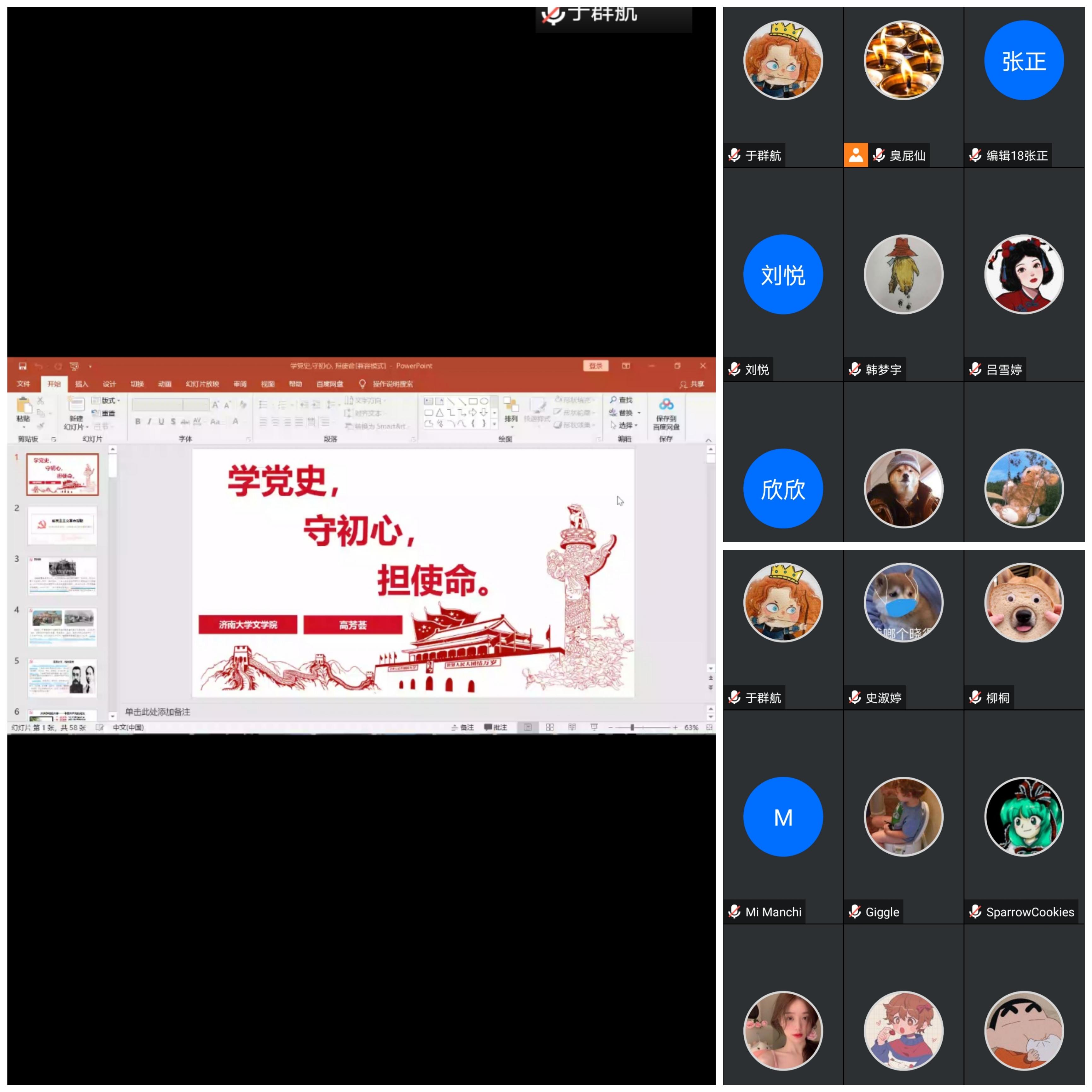 编辑出版学2018级1班团支部在“新民主主义革命”专题内容材料等充足准备后,在腾讯会议线上召集同学举办了第一次学党史活动。