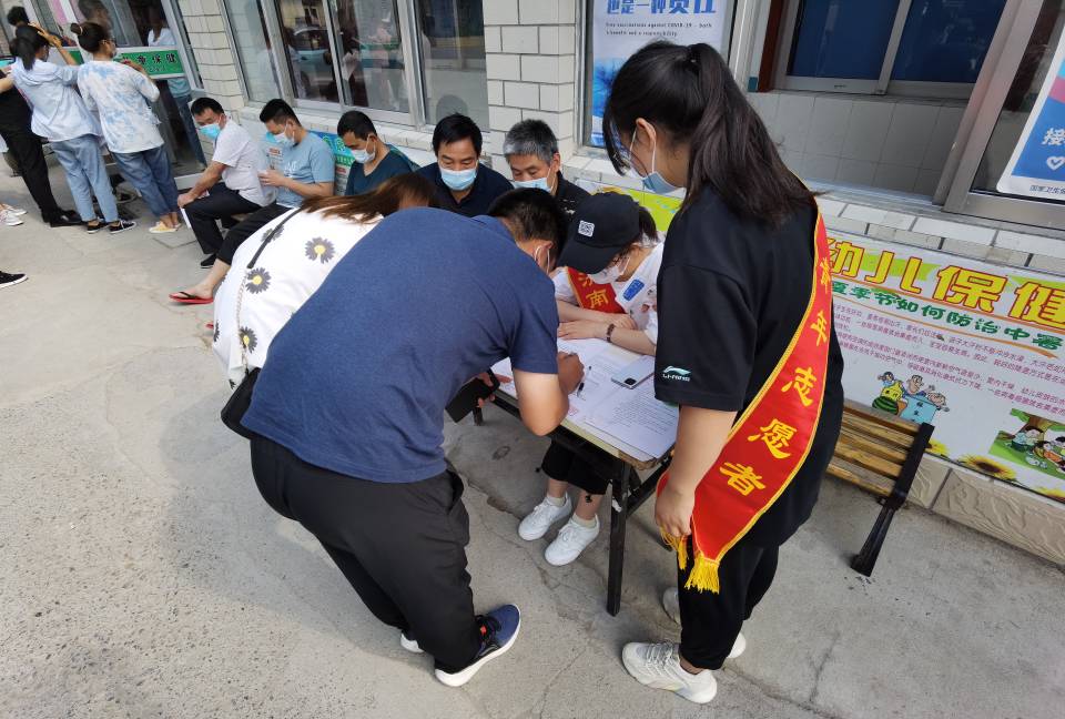 初心志愿者协会实践队于6月2日在七贤街道社区卫生服务中心协助疫苗接种工作。