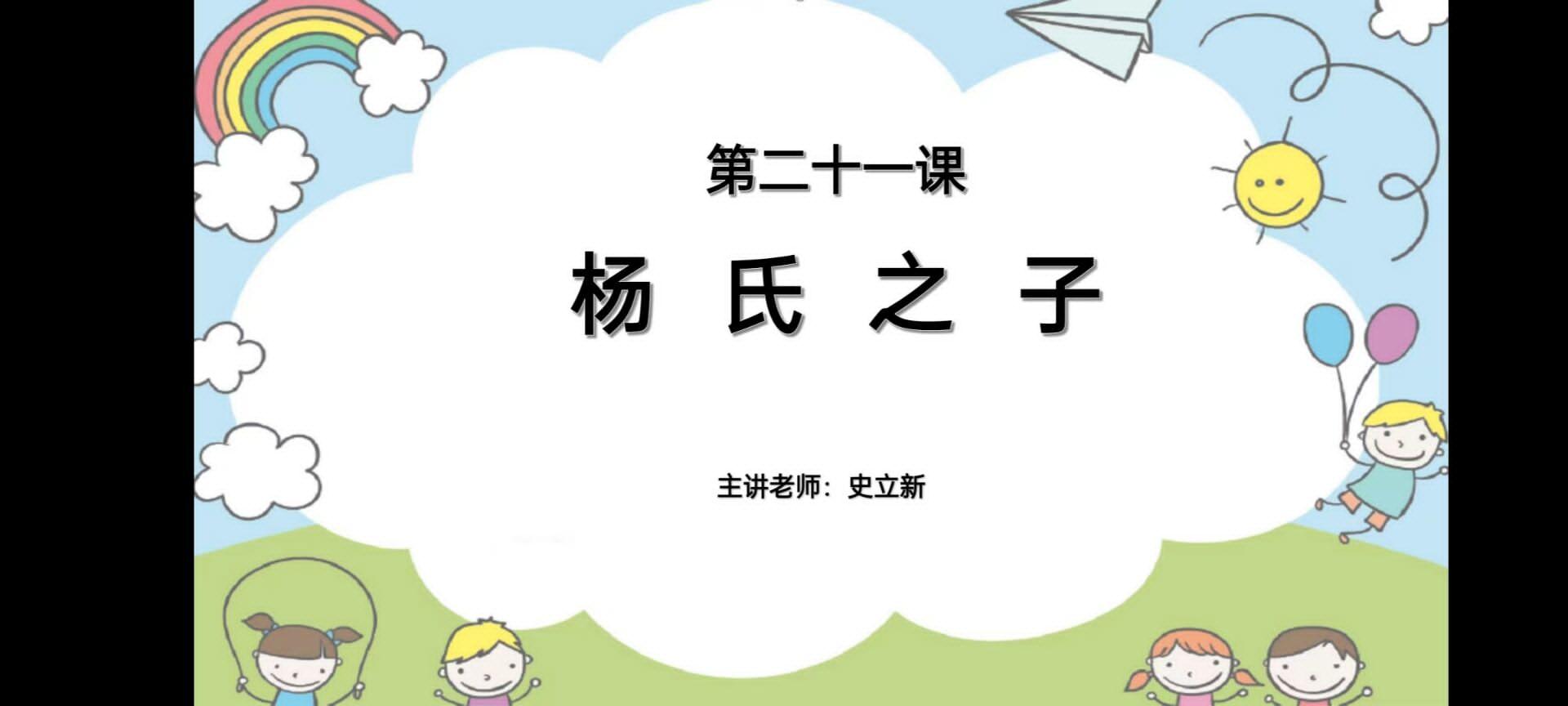 确定参与的是第二场授课,志愿授课小组由主讲人史立新和助教陈靖宇、胡千羽三人构成,为学生们讲解课文《杨氏之子》及其相关知识。活动伊始,志愿者们经过细致讨论确定了本次授课的教学方案。在课堂中,志愿者们以领读课文《杨氏之子》开启了本次志愿活动的篇章,为学生们能够提高学科素养,进一步详细地解读了生字注音和含义,拓展了《杨氏之子》相关的知识,希望学生们能够学习到课文所传递的智慧道理。在不断的课堂互动中,师生的配合性增强,同学们热情洋溢,积极活跃。最后,志愿授课以和学生们共同诵读《杨氏之子》和相关的一些名言警句圆满告终,活动反响良好。