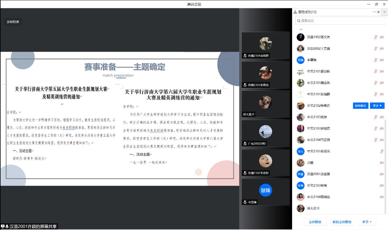 当前,疫情防控形势仍然严峻,学校采取封控管理,学院高度重视同学们的身心健康与全面发展。本次的分享会帮助了同学们更好地进行职业生涯规划,更加深入地了解职业生涯规划大赛,相信本次活动的举办能使同学们能更加积极地参与到职业生涯规划中来,促进同学们成长和发展。