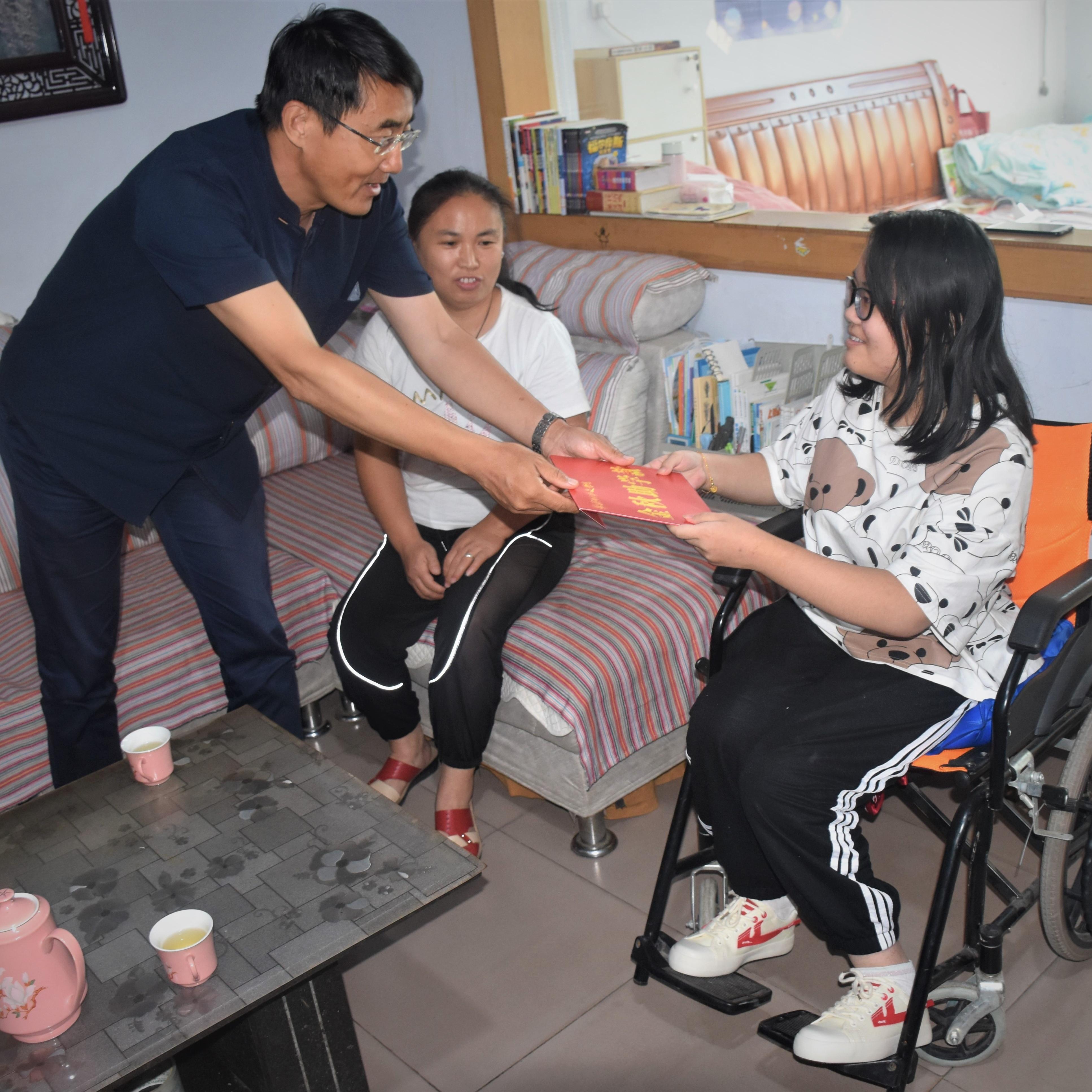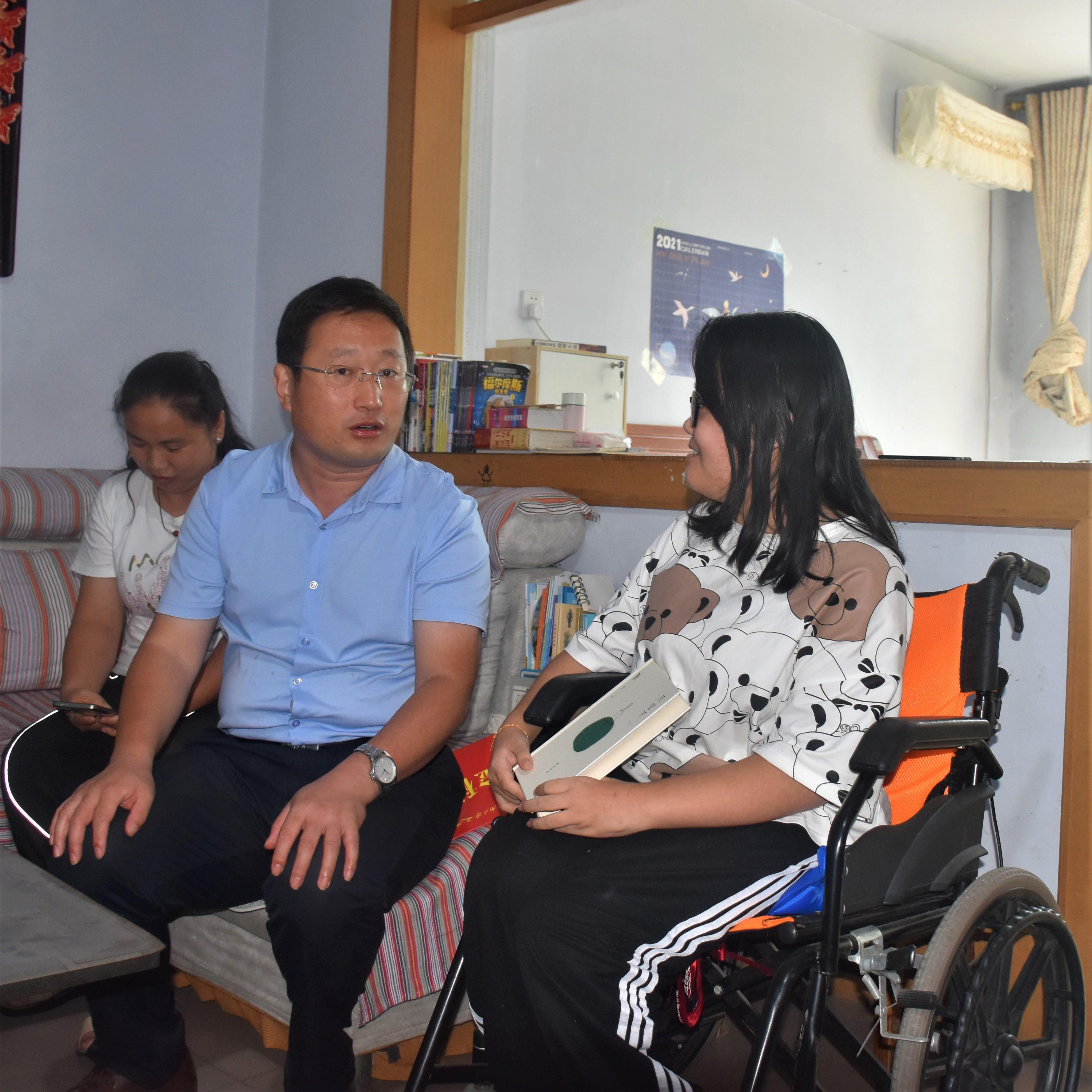 在小李同学家中,学院老师向小李同学及家人转达了学校和学院对她的关心和祝愿。在今年暑假期间,学院了解到小李同学的情况后,及时向学校有关部门进行了汇报,学校考虑到小李同学需要坐轮椅生活学习,决定单独为其提供无障碍宿舍一间,方便小李母亲照顾她的饮食起居。