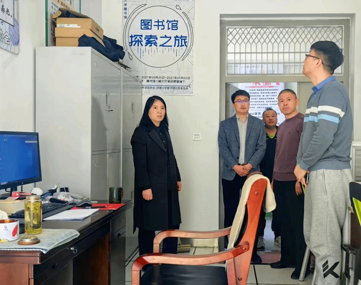 院长范丽敏与各办公室负责人排查学院资料室、实验室、办公室的消防和用电安全隐患,查看电器线路是否老化、相关消防设施是否齐全,重点强调各办公室负责人一定要增强安全意识,定期查看相关办公设施的运行状态,确保人走断电。