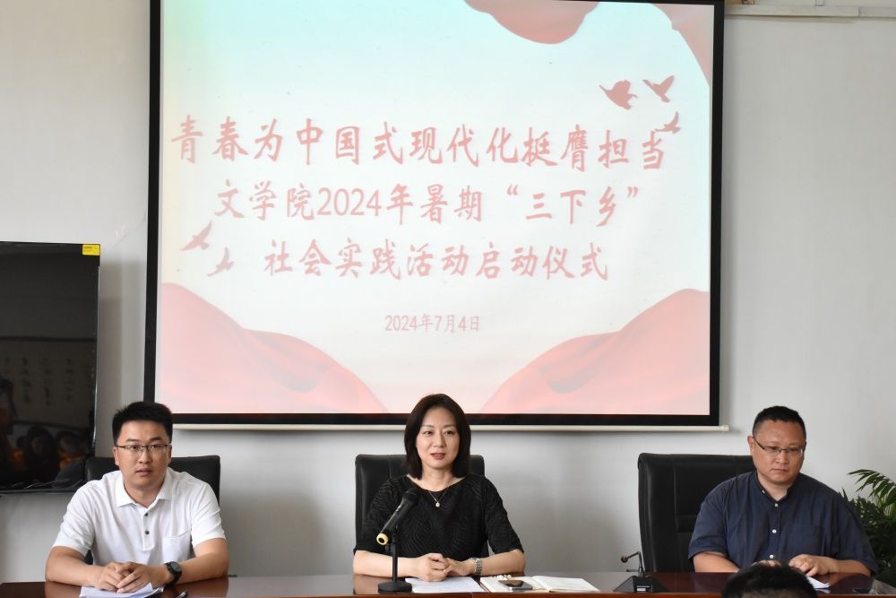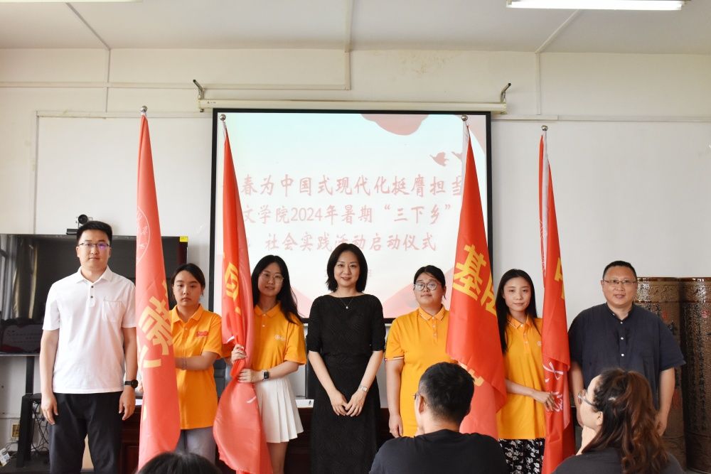 举行了2024年暑期“三下乡”社会实践活动启动仪式,学院党委副书记、副院长潘颖出席仪式。学院指导教师和学生代表参加活动,仪式由学院学办主任兼团委书记敖游主持。