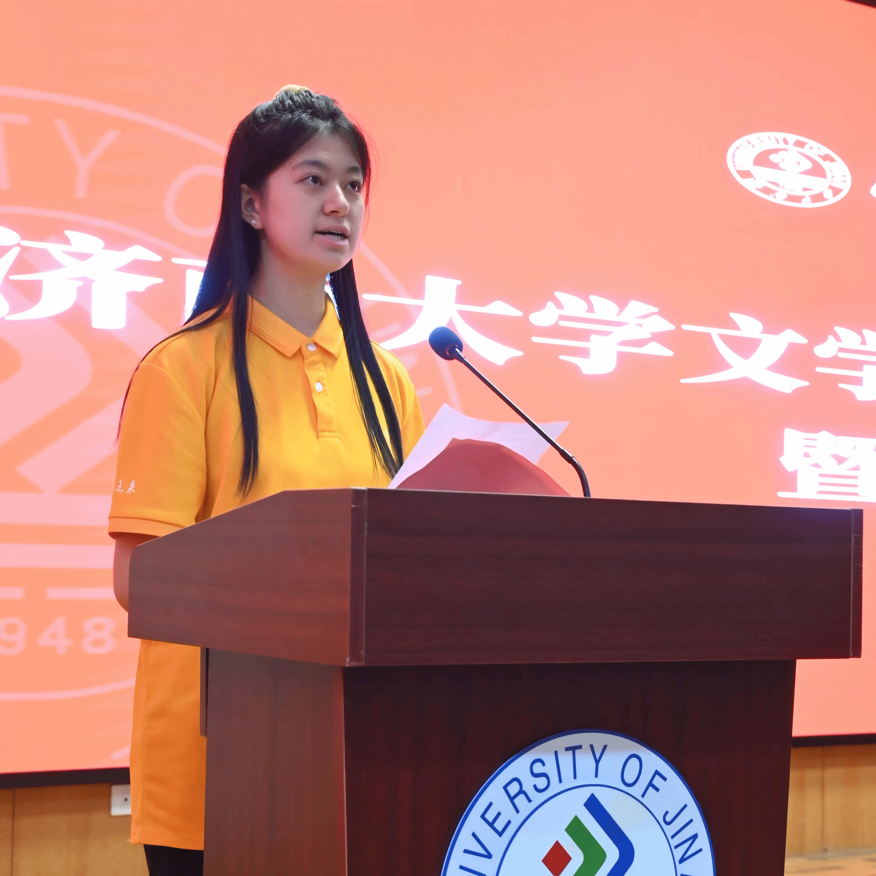在校生代表、足球预测app 第十届学生会主席王小元发言。她分享了自己的学习与生活经验,强调了大学生活中坚持自我、不断学习的重要性,鼓励新生们在丰富多彩的校园生活中勇于追求梦想,把个人发展与时代脉搏相结合,不畏艰难,行而不辍。2024级汉语言文学专业学生葛佳音代表新生发言。她在发言中表达了对足球预测app 的憧憬与热爱,倡议新生们要坚定理想信念,加强专业学习,立鸿鹄志,做奋斗者,努力在足球预测app 书写新的华章。