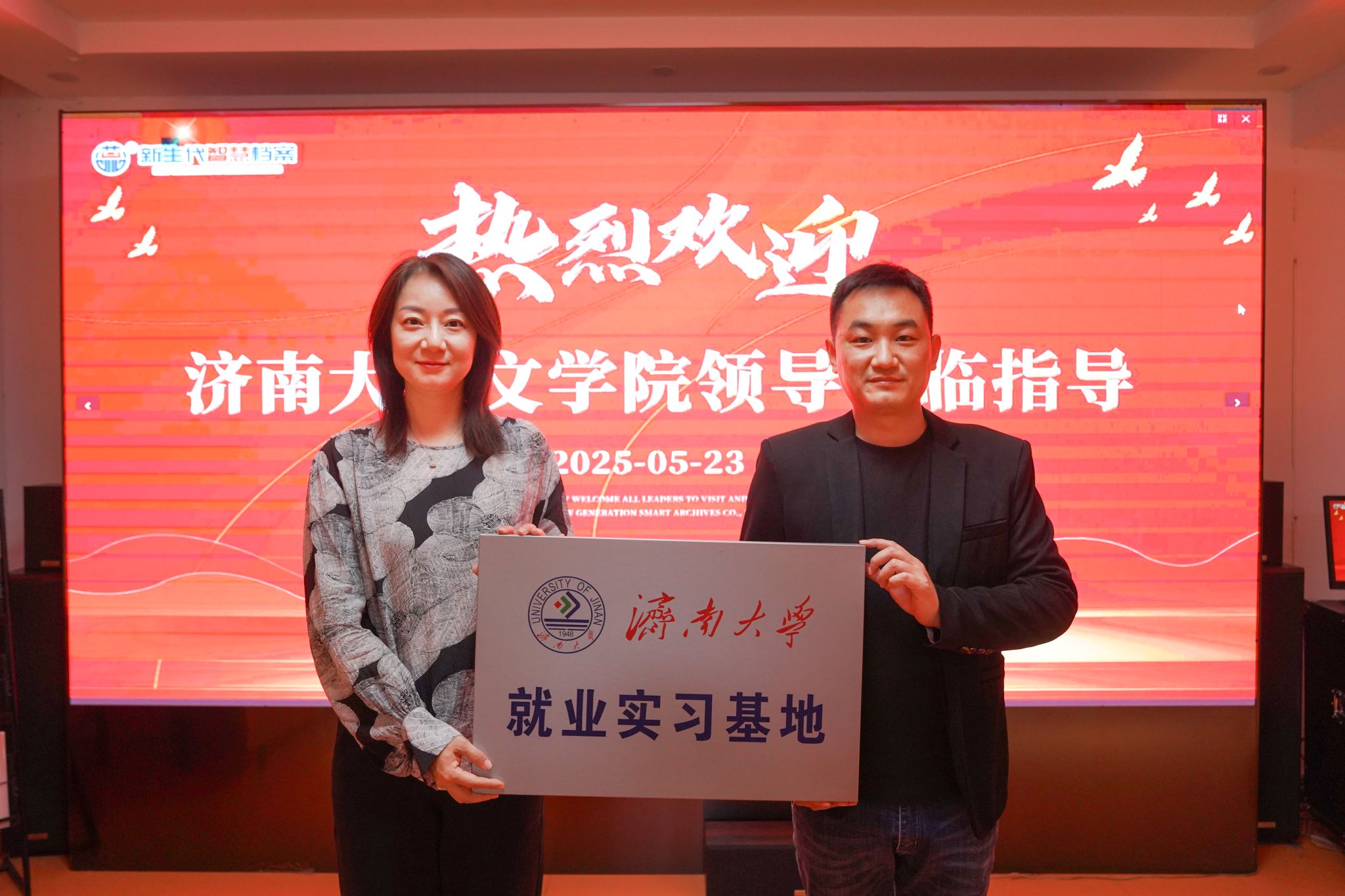 潘颖与企业签订了《济南大学毕业生就业基地协议书》,并共同为济南大学就业实习基地揭牌。