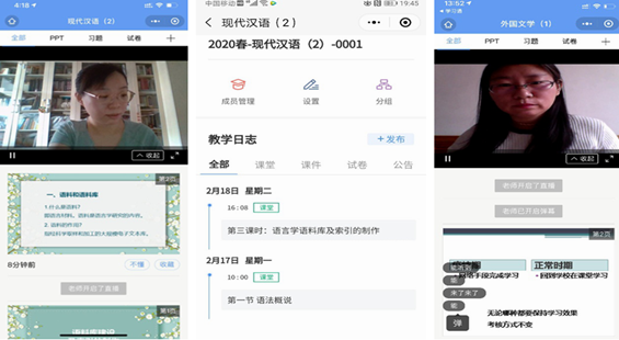 本学期共涉及汉语言文学、汉语国际教育、广播电视学、广告学、编辑出版学等五个专业的一千余名学生,课程类型涉及理论课程、实践教学、毕业论文等不同类型。学院充分发挥了教学管理办公室、学生工作办公室工作队伍的服务保障作用,全面落实每一名师生的线上学习情况,采取灵活方式帮助学生克服困难,通过授课QQ或微信群、毕业论文指导QQ群等保障进行正常的线上学习活动。
