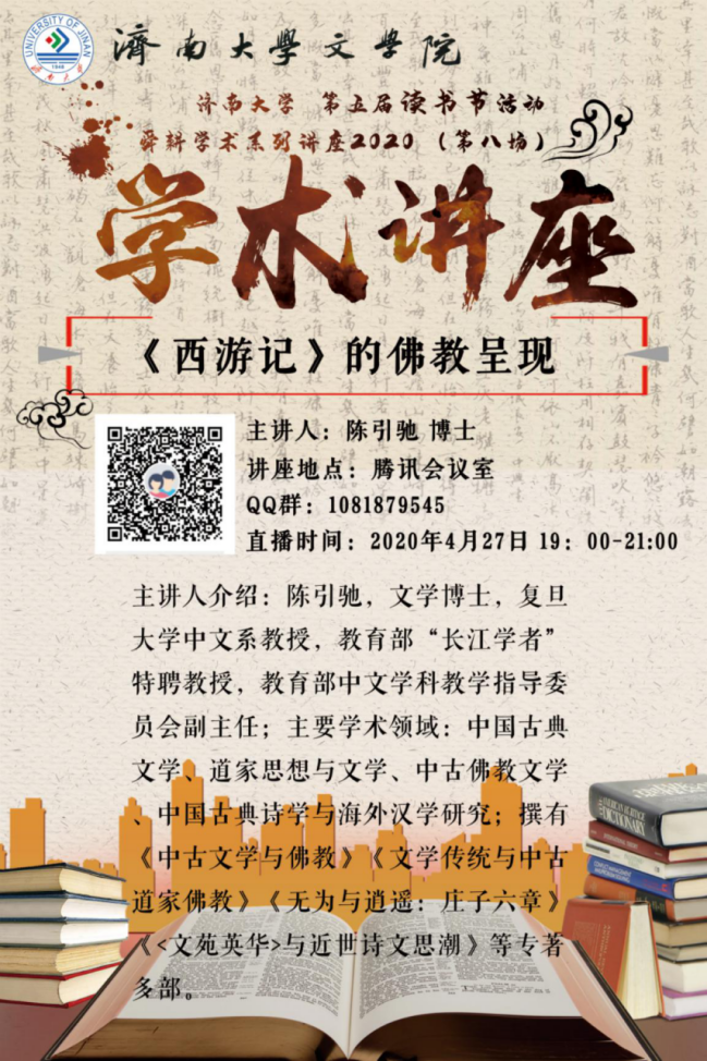 “舜耕学术系列讲座2020”第八场如期举行。教育部“长江学者”、复旦大学中文系陈引驰教授作了题为《<西游记>中的佛教呈现》的学术报告。讲座采用腾讯直播的形式,足球预测app