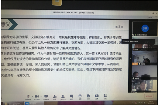 (古代文学组预答辩会场截图)