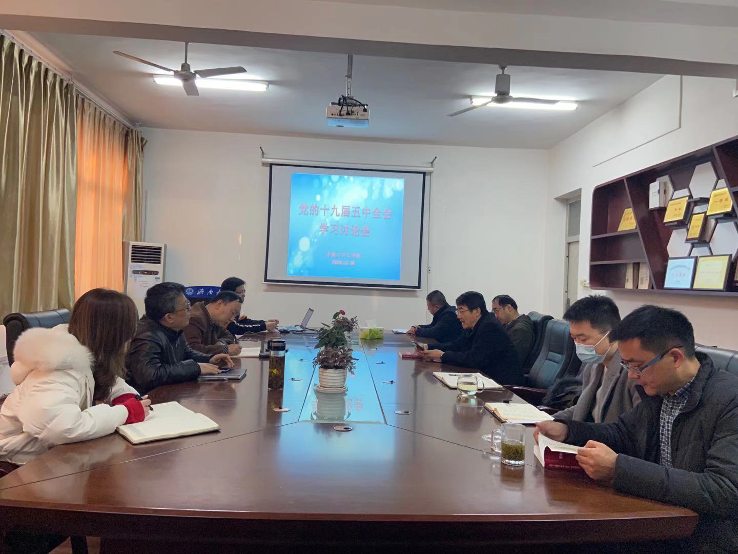 党委中心组进行集中学习,学院党委书记陈卫东带领大家共同学习党的十九届五中全会精神。