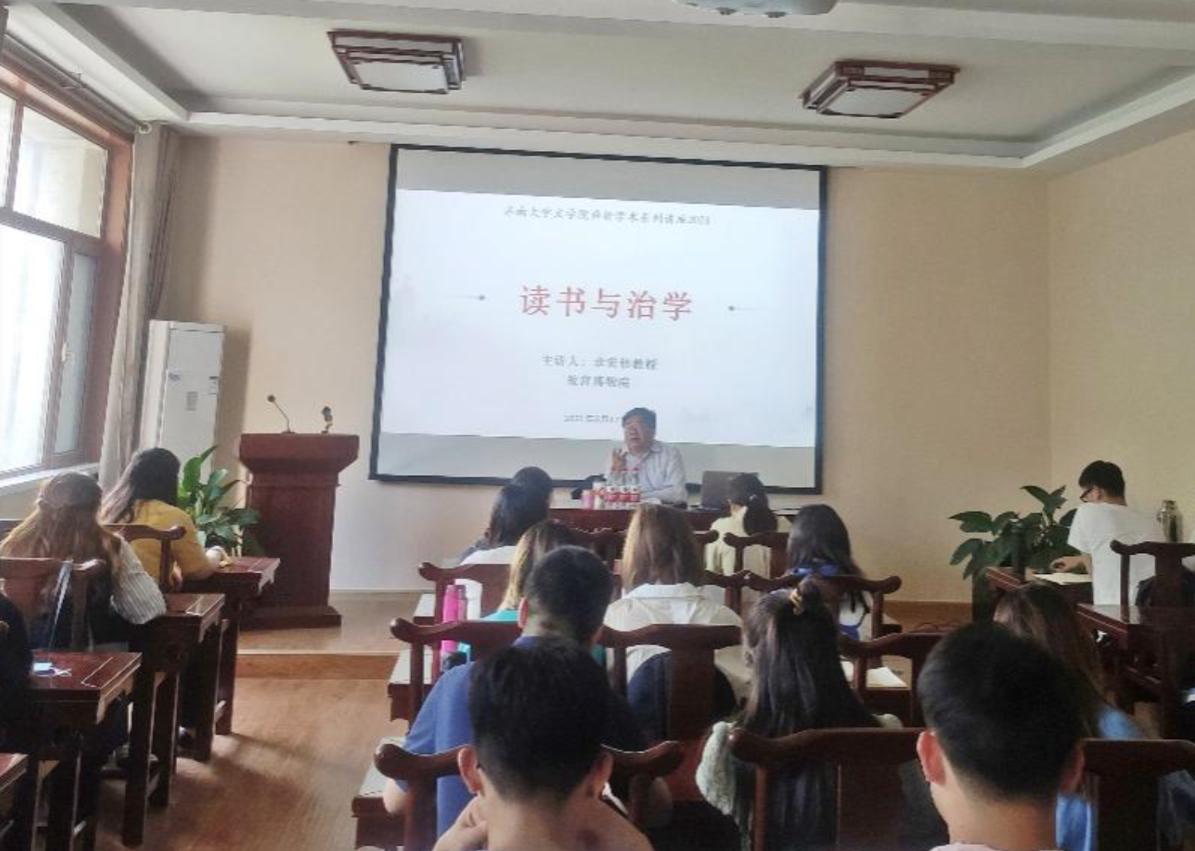 举办舜耕学术系列讲座2021第4场“读书与治学”,故宫博物院故宫学研究所所长、南开大学兼职教授、博士生导师章宏伟先生主讲,汉语言文学、编辑出版学等专业部分师生参加,出版专业负责人陈静教授主持。