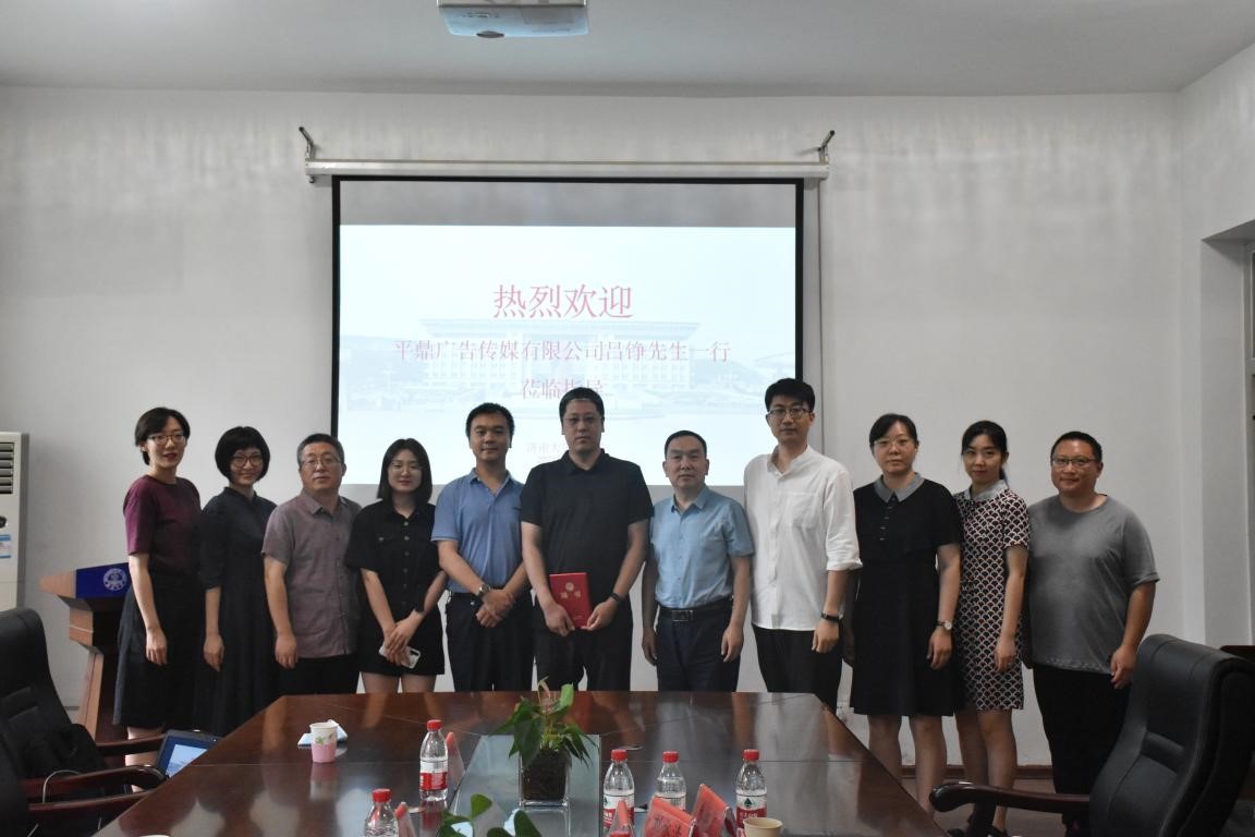 会上,吕铮董事长介绍了平鼎传媒的发展状况和业务范围,以及在融媒体平台建设、大数据可视化、私域流量运营和非遗文化传播等重点研发领域所取得的业绩和优势,表达了与我院广告学、广播电视学等专业开展校企合作、实现优势互补的愿望。