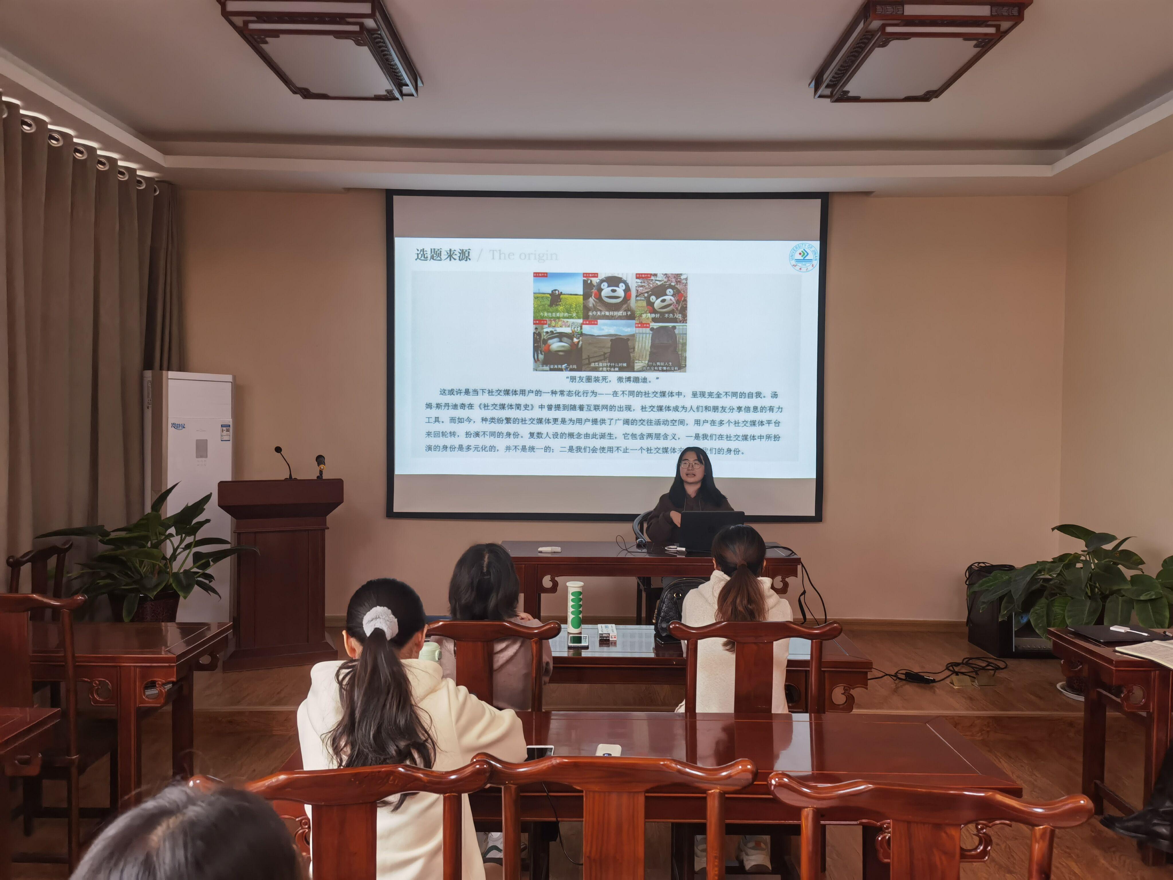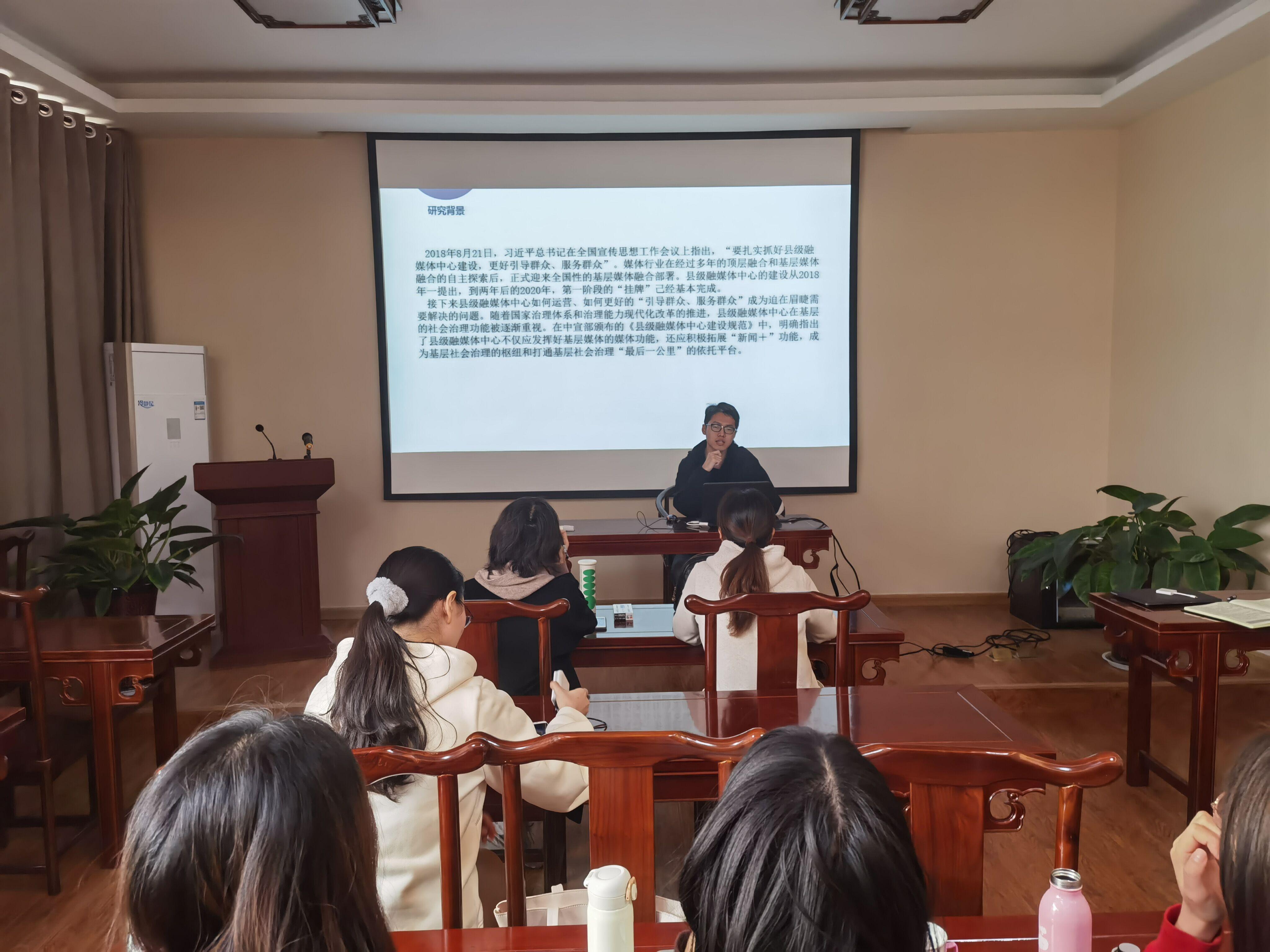 首先,师生就新闻与传播前沿话题展开学术探讨。学生们分别分享了对县级融媒体、QCA研究方法、健康传播、媒介依赖、新闻可视化、社交媒体用户迁移等热点话题的自主研究成果。老师们逐一对大家的汇报分享进行点评后,师生就上述话题展开了热烈的讨论,现场气氛非常活跃。然后,老师们围绕学生们关心的即将开始的学位论文开题进行了专项指导。陈晓洁老师和闫伟娜老师对同学们的学位论文选题进行了可行性评估,并指出了内容框架存在的不足以及改进办法。