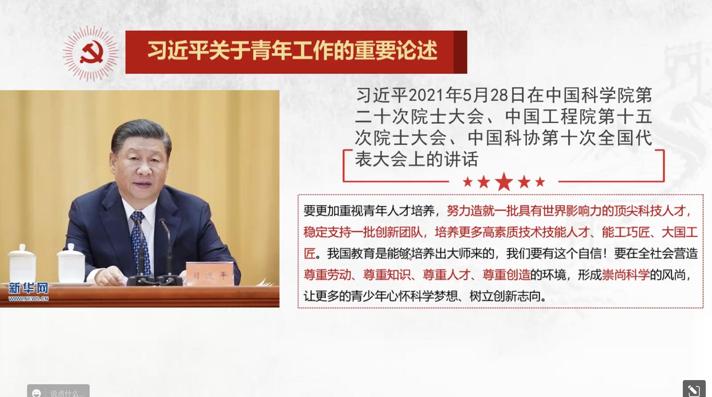 本次团课分别为同学们讲解了中国共产主义青年团团史、党领导中国青年运动的光辉历程、习近平主席关于青年工作的重要论述这三方面。团课着重讲解了坚持党的领导是中国青年运动蓬勃发展的根本保证,高扬爱国主义旗帜是中国青年运动的主流主线,坚持与人民相结合、与实践相结合是中国青年运动的基本途径,尊重青年主体地位是中国青年运动的活力源泉,坚持永久奋斗、不懈奋斗是中国青年运动的精神气质,重视发挥共青团组织的骨干作用是中国青年运动的鲜明特色。