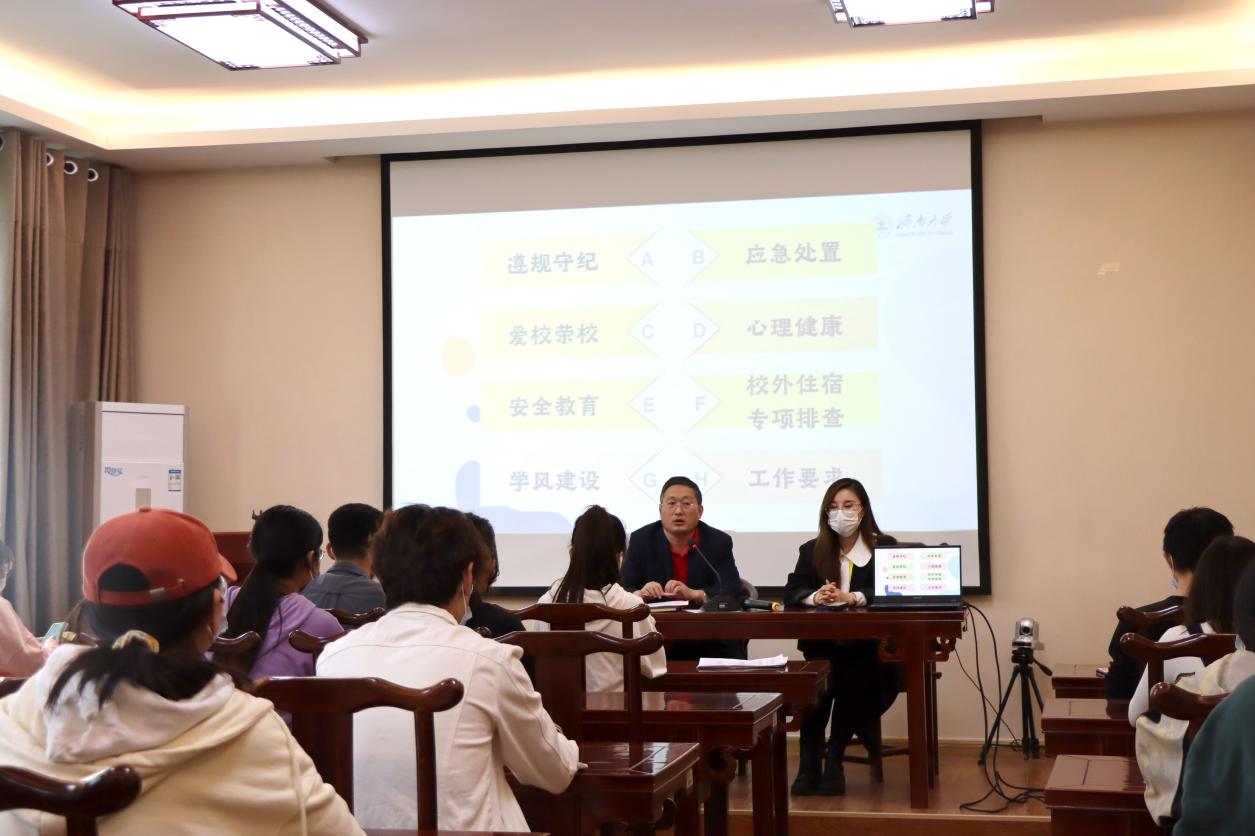 班长、团支书、副班长、学习委员在舜耕书院召开会议,20级全体学生线上参会。