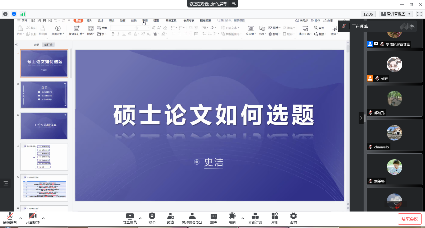 最后,史洁教授再次强调选题须遵循问题导向,要深入思考选题的周延性、创新性和量力性,找好关键词之间的契合点,才能选定一个恰当的题目。