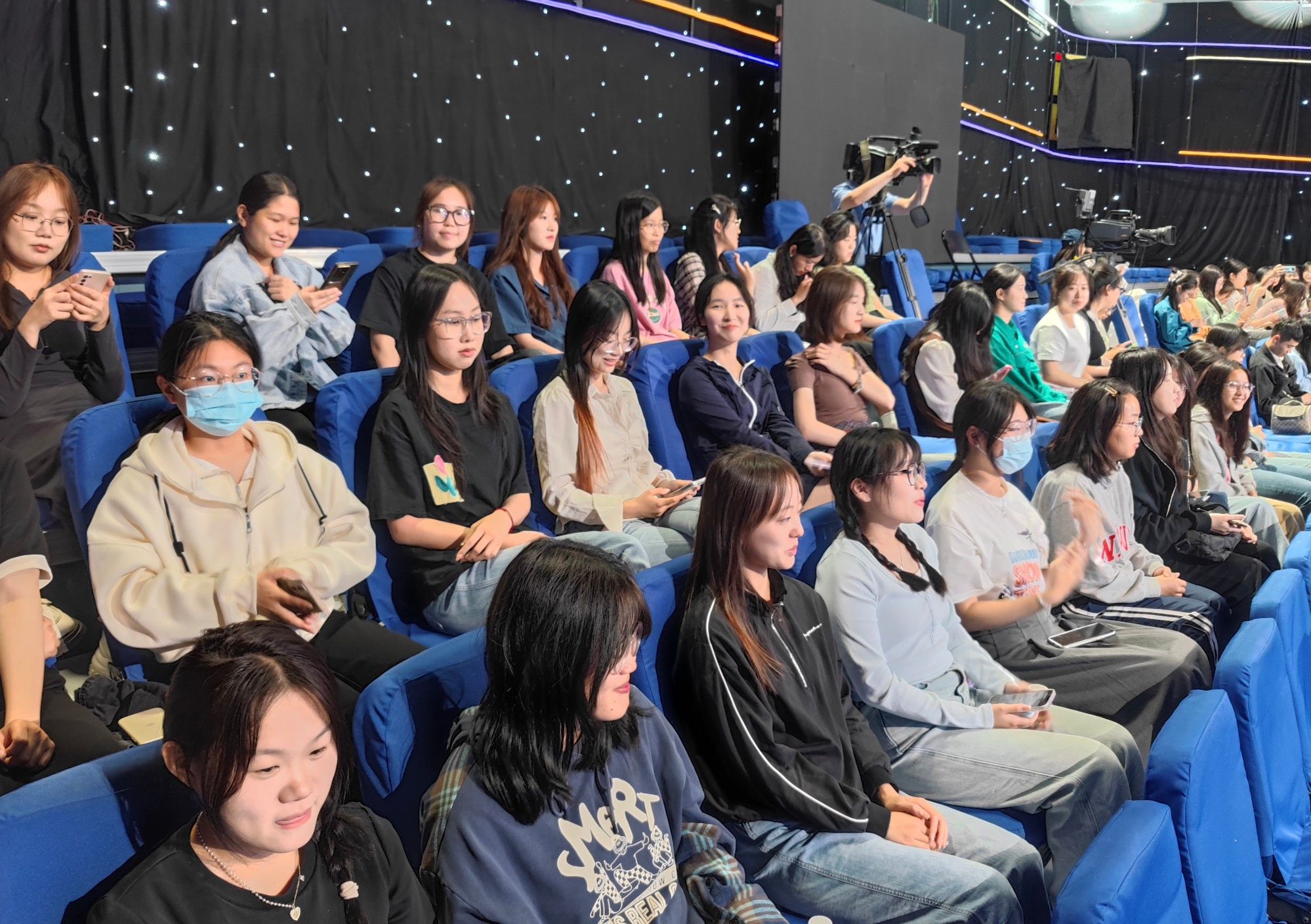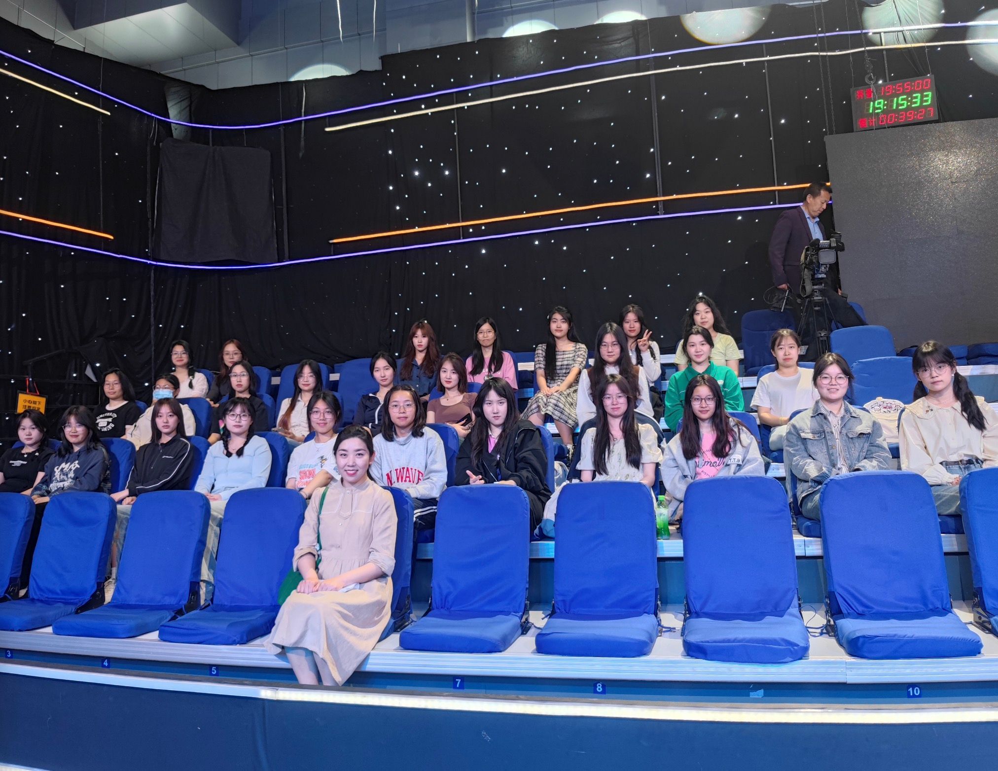 最后,在节目直播的过程中,同学们直观了解到了现场多个摄像机位的运动变换以及导播切换下的电视直播画面同现场机位调度之间的联系。节目录制持续近两个小时,现场交流氛围非常活跃。孙佳祺老师还同山东省广播电视台生活频道提出进一步交流学习的倡议,加深了我院同山东广播电视台的联系,为我院广播电视专业学子的专业培养和发展寻求新思路和新场地,也为同学们提供了更多的学习资源与工作机遇。