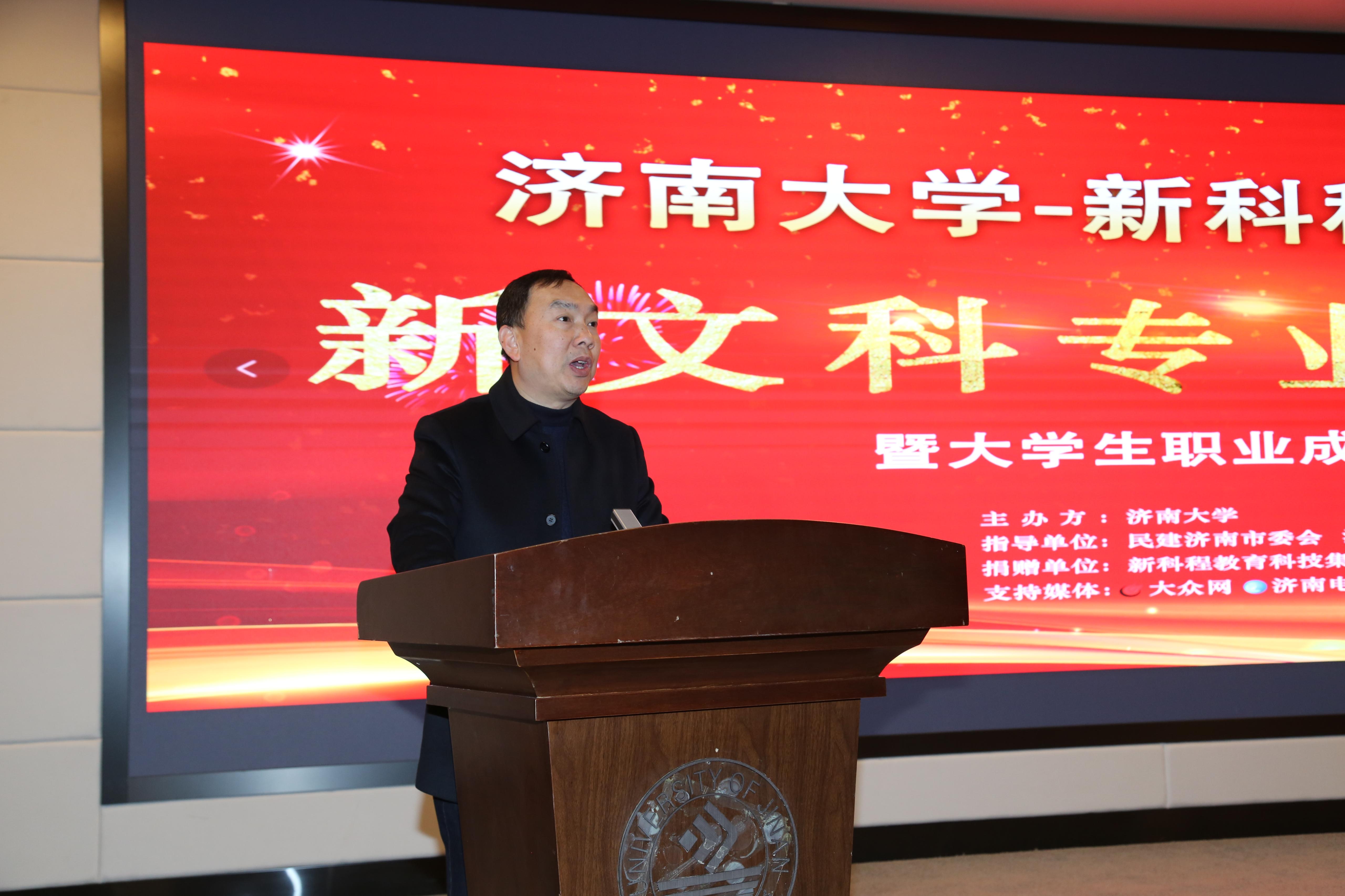 刘宗明副校长代表学校致辞,对民建济南市委会、市中区委统战部、新科程教育科技集团表示感谢,介绍了学校在人才培养、科学研究、社会服务、文化传承与创新、国际交流与合作等方面取得的成就。刘校长说,近两年,济南入选山东省高水平大学建设“冲一流”建设高校,核心发展指标均居省属高校前列,人才培养成效显著,获批一批国家一流专业、一流课程,新增一批博士、硕士学位授权点和专业学位类别。山东省一流学科、高峰学科、优势特色学科等建设加速推进,年度科研经费稳步增长,重大项目、平台和奖励取得突破,社会服务能力持续提升,产教融合发展全面起势,社会影响力和综合实力不断增强。同时,介绍了足球预测app