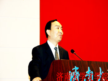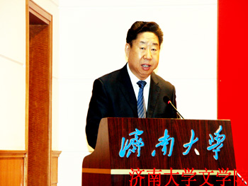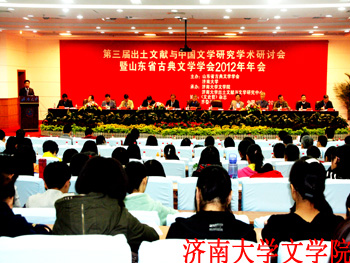 10月19日,由山东省古典文学学会与济南大学共同主办,足球预测app 以及济南大学出土文献与文学研究中心承办的“第三届出土文献与中国文学研究学术研讨会暨山东省古典文学学会2012年年会”在济南大学召开。山东省古典文学学会会长、山东大学终身教授袁世硕,山东省政协副主席、山东师范大学齐鲁文化研究中心主任王志民,济南大学党委书记范跃进,百余位来自省内外47所高校和科研单位的专家学者以及《光明日报》、上海古籍出版社等新闻出版机构的相关同志出席会议。大会开幕式由山东省古典文学学会副会长,济南大学副校长蔡先金教授主持。