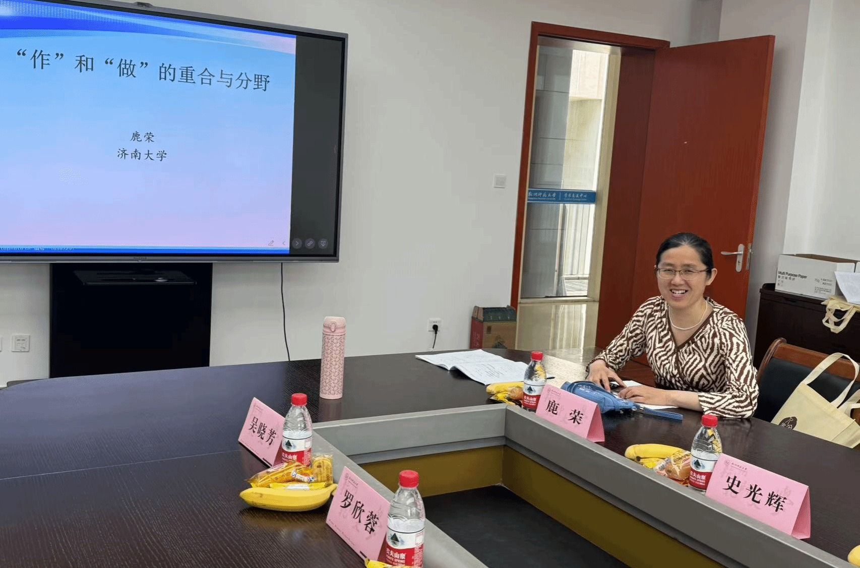 鹿荣认真听取了与会专家的大会报告,并以“‘作’与‘做’的重合与分野”为题,进行了小组发言,得到了与会同仁的肯定。