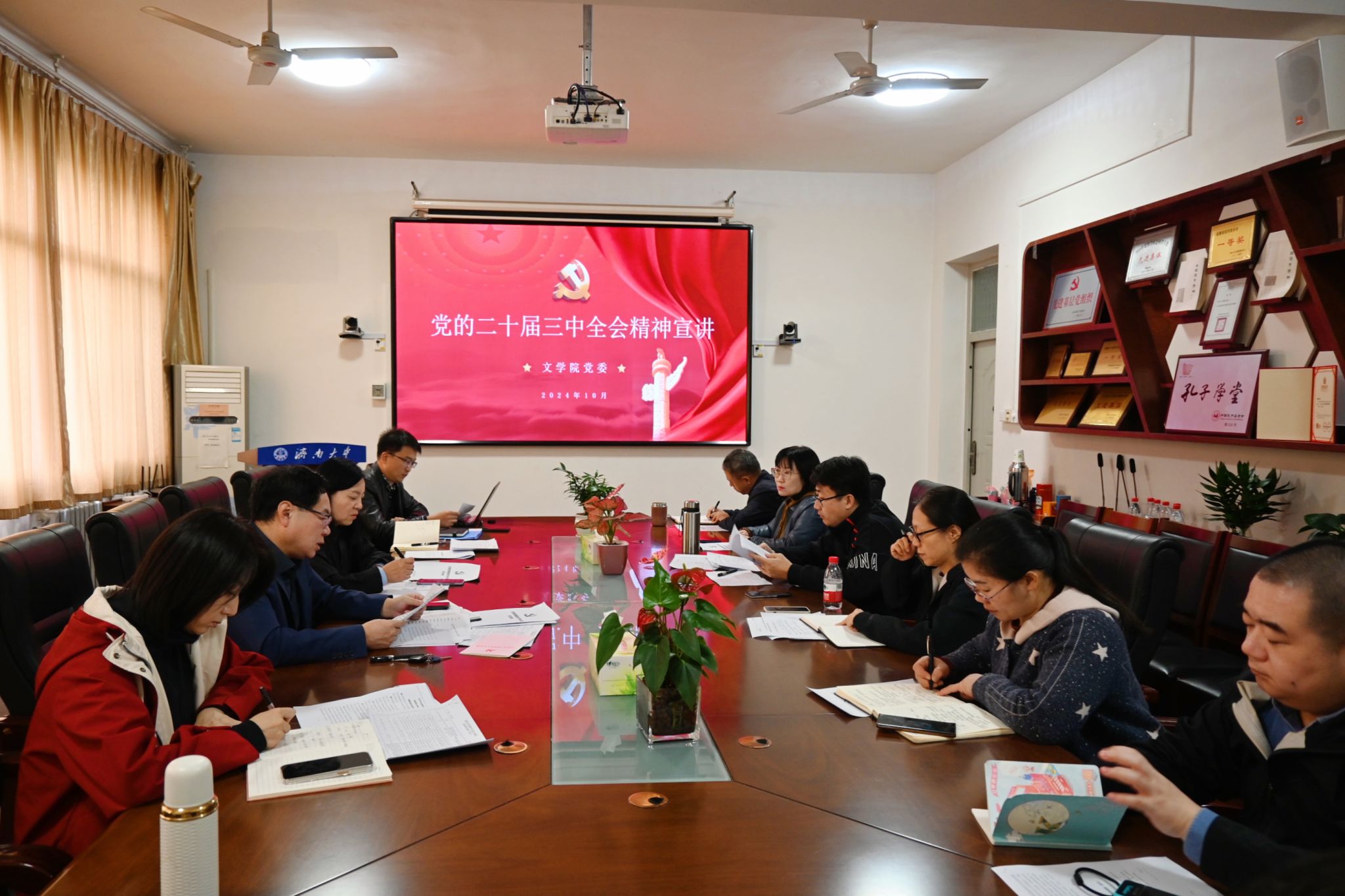 为全面深入学习领会党的二十届三中全会精神,高质量做好全会精神宣讲工作,引导广大师生,衷心拥护“两个确立”忠诚践行“两个维护”,把思想和行动统一到全会精神上来,推动全院迅速兴起学习贯彻全会精神的热潮。10月22日,在学院会议室3教411学院党委书记董海军作党的二十届三中全会精神专题宣讲报告,学院全体领导班子、科级干部、党支部书记参加宣讲会。