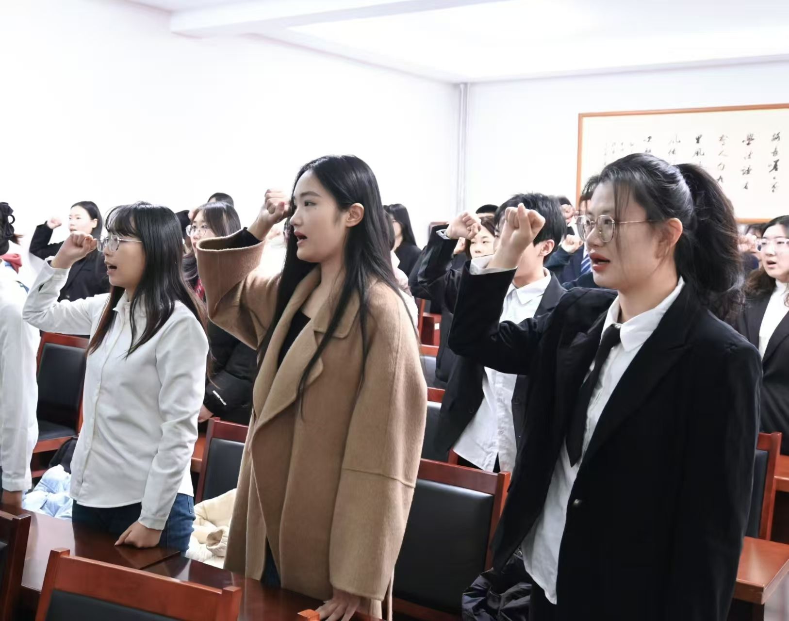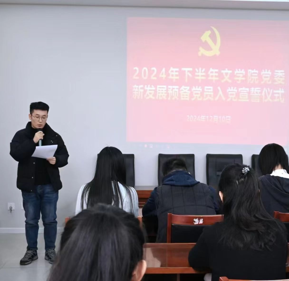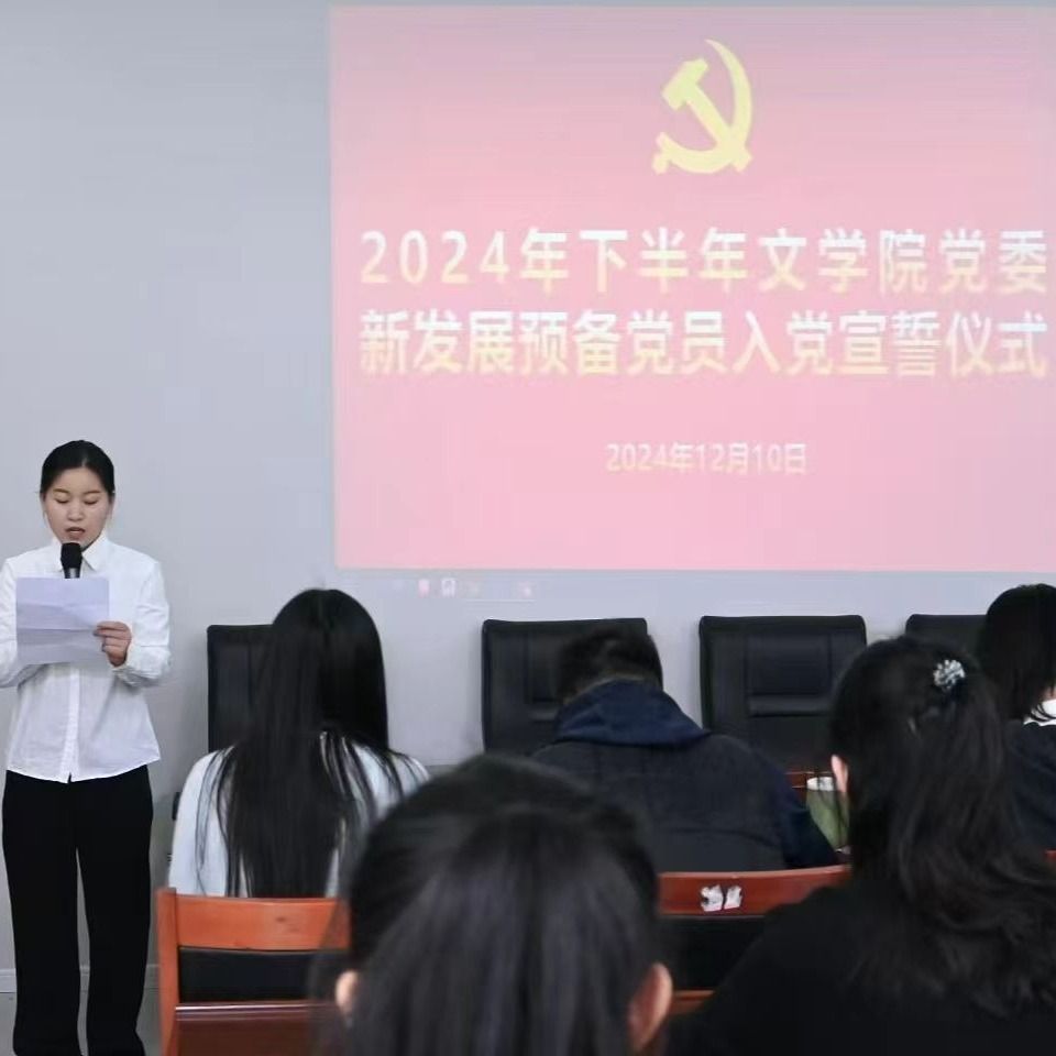 在3教418会议室举行了2024年下半年预备党员入党宣誓大会暨新发展党员“入党第一课”,学院党委副书记、副院长潘颖,各学生党支部书记,全体辅导员,本学期新发展的57名预备党员,部分学生党员代表参加会议。会议由足球预测app