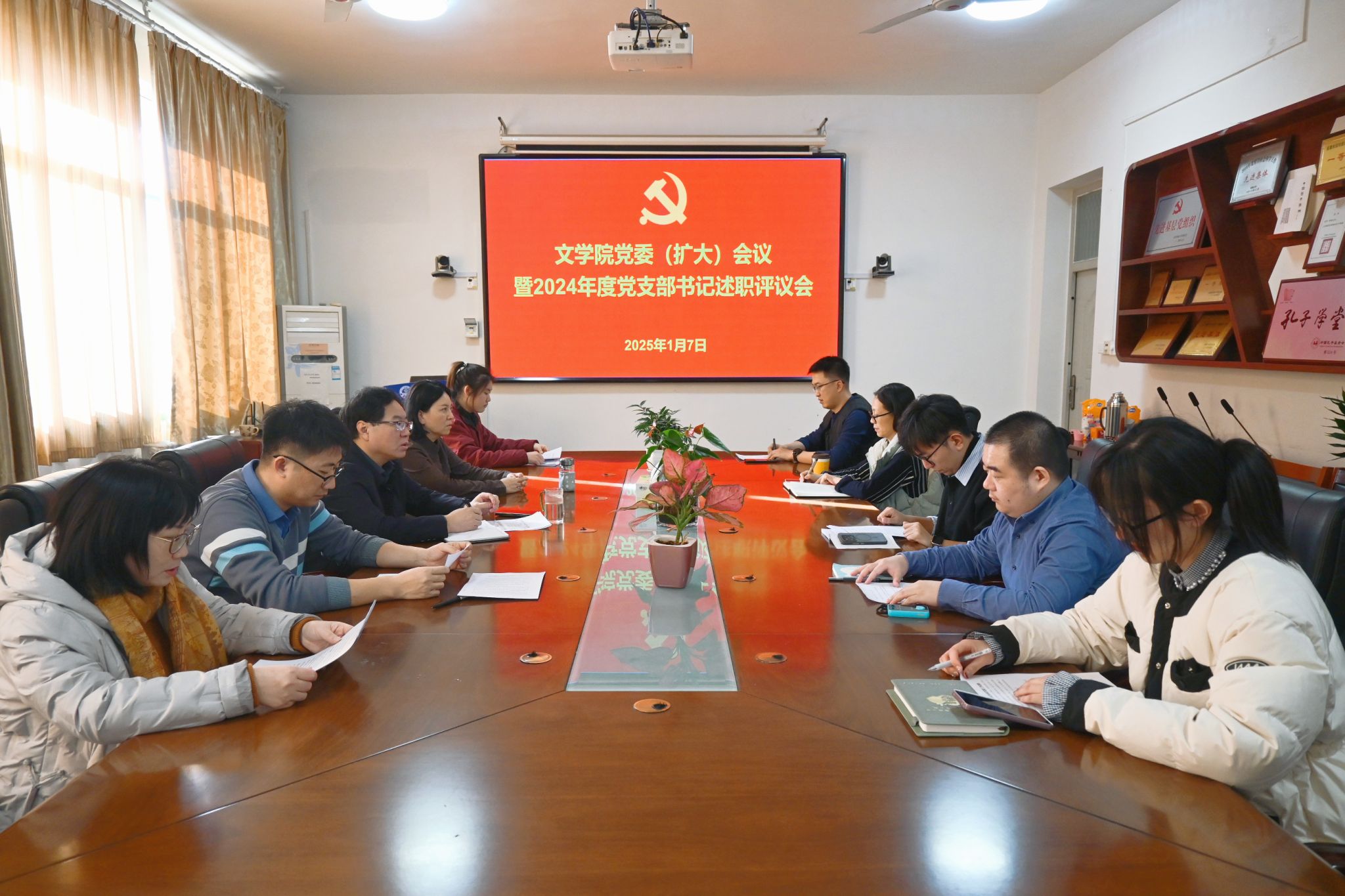 党委举行2024年度党支部书记述职评议会。学院领导班子成员、全体党支部书记参加了会议。会议由学院党委书记董海军主持。