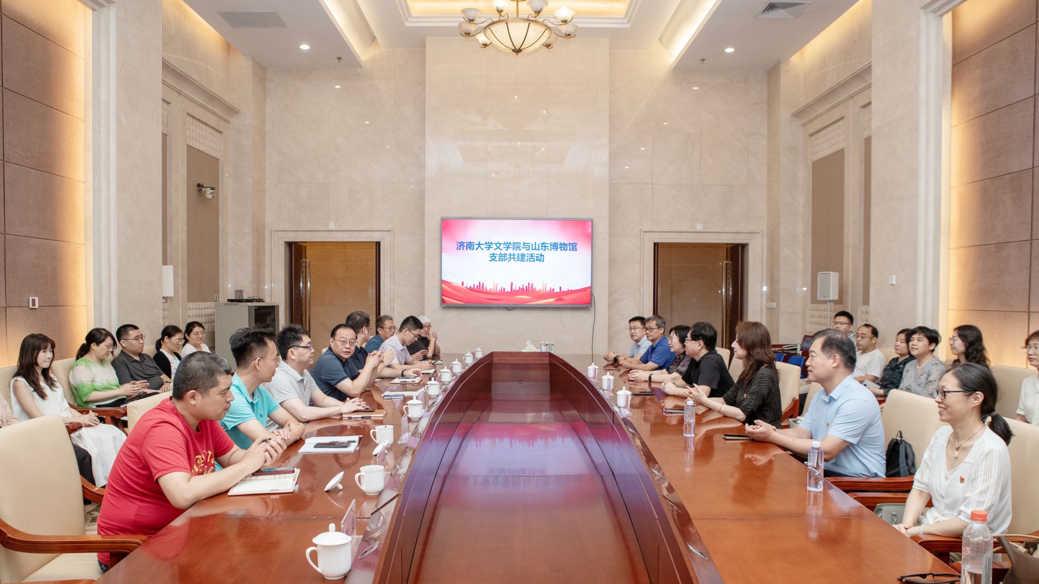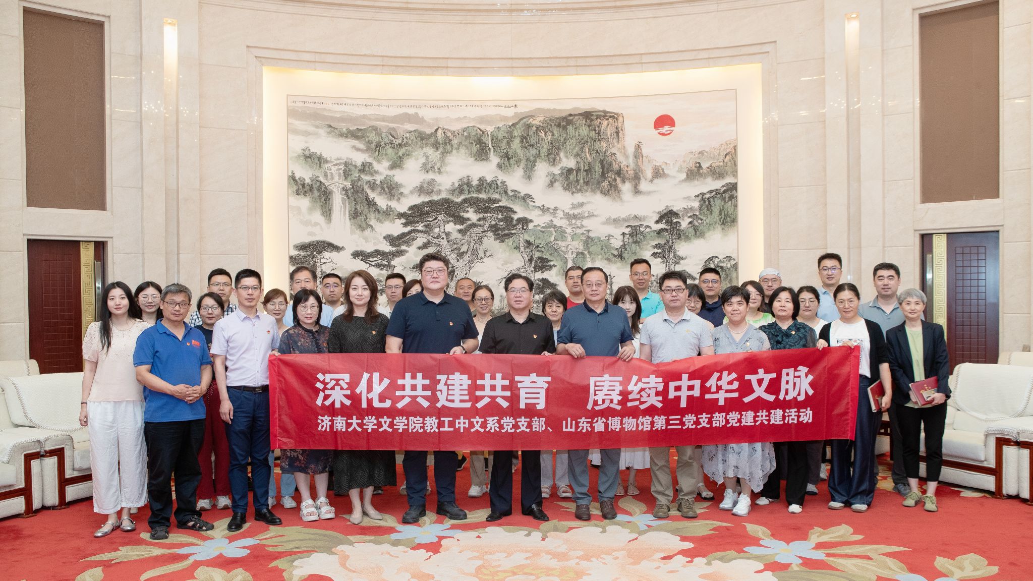 与山东博物馆在探索党建共建与文化传播等领域的创新实践。今后双方将以此次活动为契机,充分利用博物馆丰富的历史文化资源,发挥校友资源优势,在专业教育、人才培养、学术交流、文化传承等多方面院开展切实的深入合作,促进高等教育与文博事业的深度融合,充分发挥文化育人功能,培养出更多具有深厚文化底蕴和创新精神的优秀学子,为增强文化自信、推进文化强国建设贡献力量。