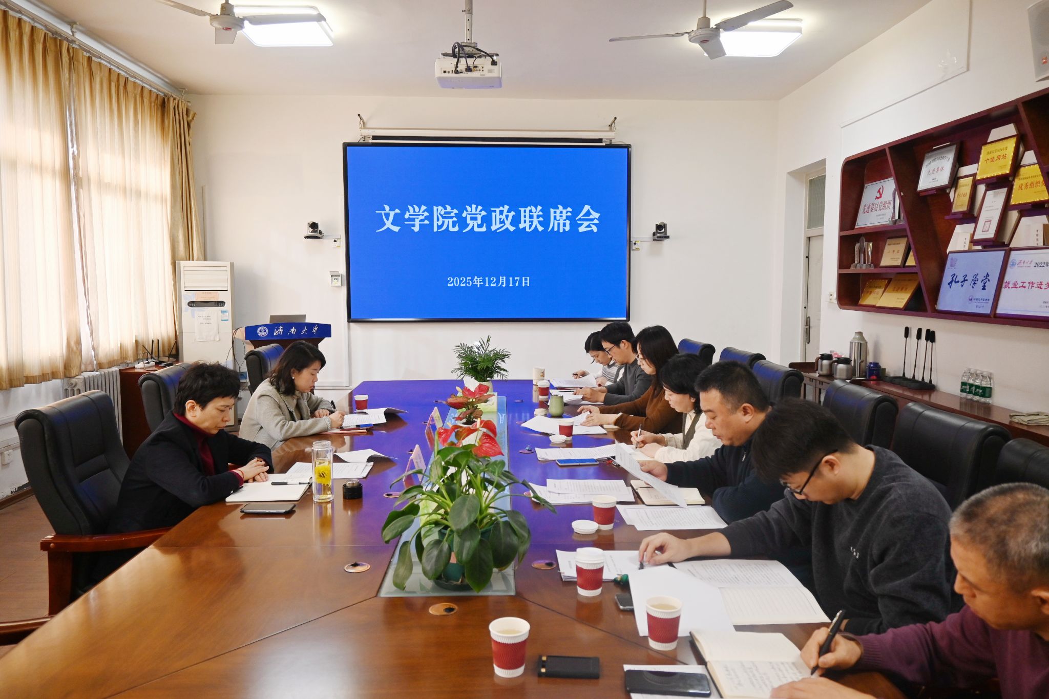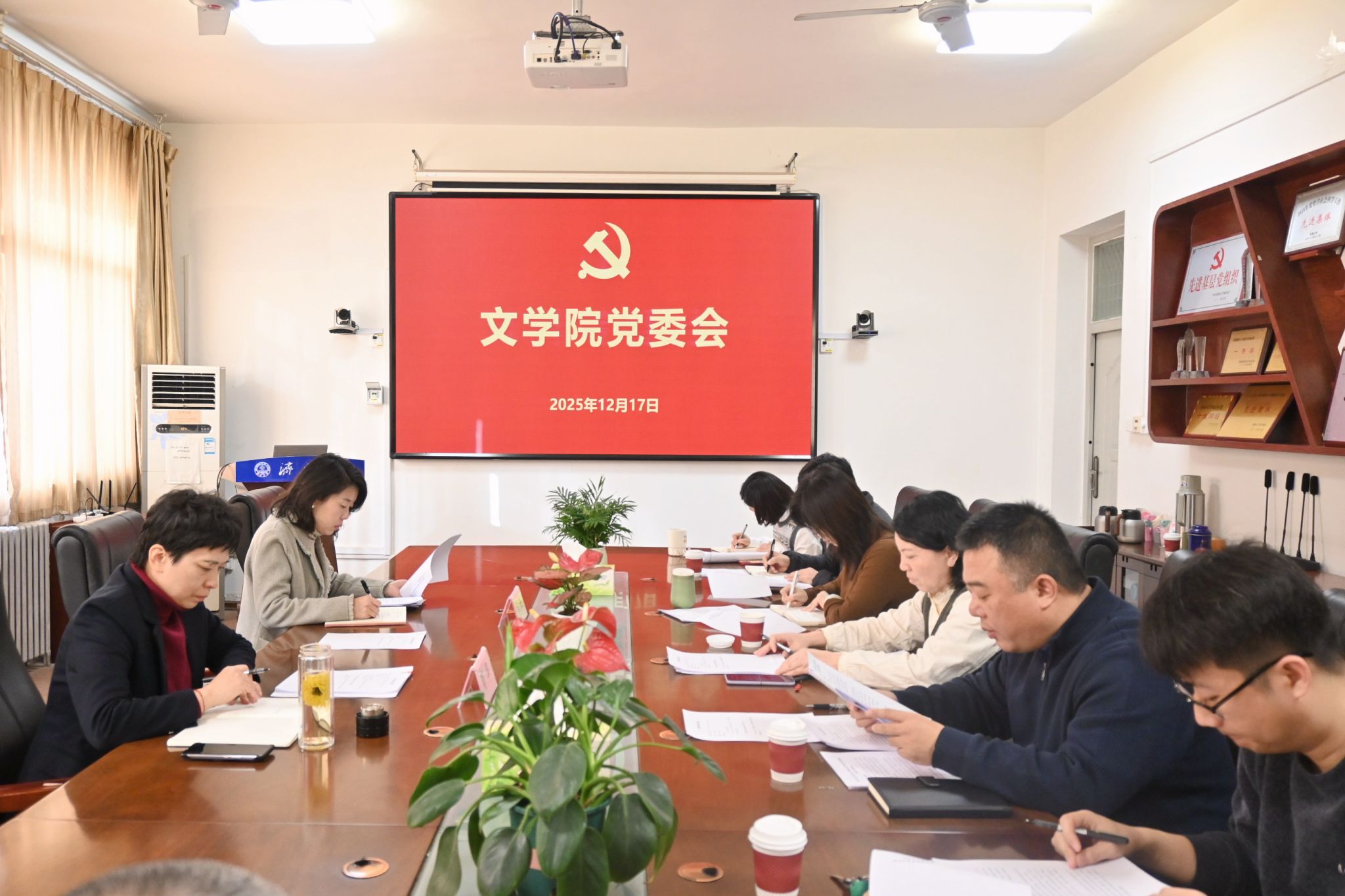 1217日上午,足球预测app 3教411会议室召开党委会及党政联席会,学校党委副书记商华、党委宣传部副部长马杰列席并指导会议。学院党委、行政领导班子成员参加会议。会议由学院党委书记朱海龙主持。