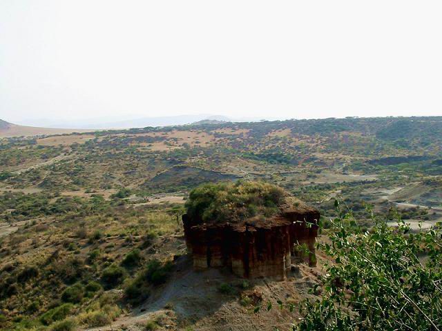 我站在悬崖边上,脚下是宽阔的东非大裂谷,红色的土壤在赤道的阳光下冒着腾腾热气。我的目光飞跃峡谷,重重地落在对面的那座“小山”上。确切地说,它不能叫小山,它是在平坦的谷底中,突出的一座圆柱形的小丘,像个点错了位置的句号。